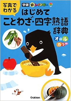 新レインボー 写真でわかる はじめてことわざ・四字熟語辞典(オールカラー) (日本語) 単行本 – 2018/7/3 - ことわざ・四字熟語・慣用句・故事成語を、写真で解説! ことわざ・四字熟語などを初めて勉強する人、また、楽しく学びたい人のための辞典です。◆写真を見るだけで、よくわかる! ことわざ・四字熟語・慣用句・故事成語を、大きな写真とともに解説しています。写真で見ることによって、言葉の意味を理解しやすくなり、しっかり覚えることができます。たとえば、「青菜に塩」。元気をなくして、しょんぼりすることのたとえです。本書では、実際に青菜に塩をかけてみた写真を掲載。青菜がしおれている様子=しょんぼり、という語源が一目瞭然です。たとえば、「ぬれ手であわ」。この「あわ」は、石鹸の泡ではありません! 穀物の粟(あわ)のことです。本書では、濡れた手で粟の実にさわってみた写真を掲載。手に粟がたくさんくっついている様子から、苦労しないで多くを手に入れるという意味が理解できます。「はじめて」の人はもちろん、楽しく学びたい大人の方にもおすすめです! ◆オールカラーなので、楽しい! 写真だけではなく、マークやツメ(左右の端の「あ・か・さ…」など)も、もちろんカラー。読みやすく、どのページを開いても楽しむことができます。◆すべての言葉に例文つき! 写真で解説している言葉には、すべて例文がついています。実際にどのように使うか、よくわかります。◆収録語数は、約330語! 写真のページのほか、欄外やコラムでも言葉を解説しています。覚えるとよい言葉として「最重要語」「重要語」も示しました。◆すべての漢字にふりがながついています。幼児~小学校低学年から使うことができます。◆索引が充実 "五十音順索引"のほか、"最重要語・重要語索引" "テーマ別索引"などがあります。◆プレゼントにもおすすめ! 楽しく、わかりやすいので、ことわざ辞典を初めて使う人にピッタリ。プレゼントや、入園・入学祝いにもおすすめです。